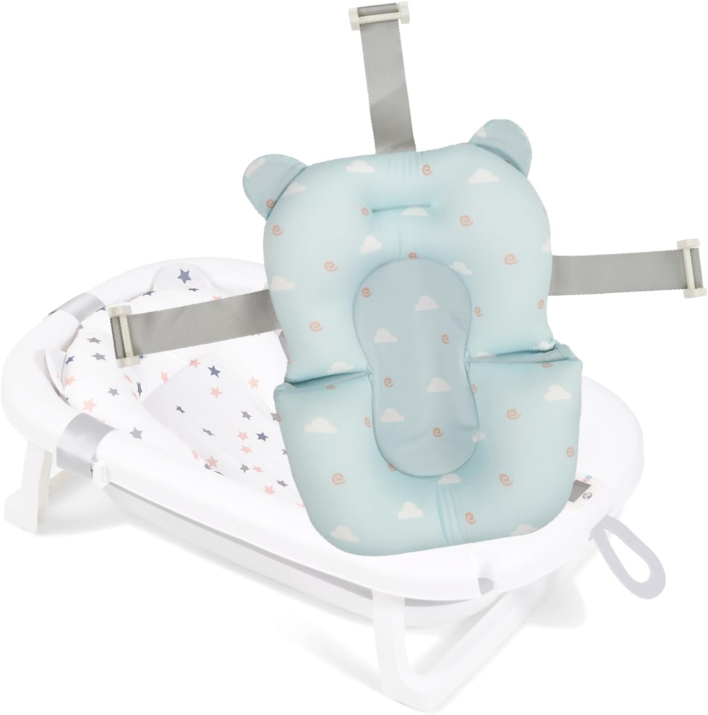 JUPPL­IES Folda­ble Baby Bath with Ergon­omic Cushi­on, Digit­al Therm­omete­r and Non-S­lip Feet